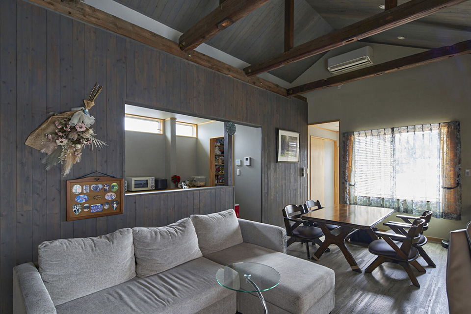 Oさんのご両親が所有する築100年ほど経つ小さな平屋は、もともと賃貸住宅として建てられたもの。空室になり取り壊しを考えたものの、柱や梁の傷みが少なかったことから「柱と梁を活かしたい」と、佐善工務店に相談に来られました。ご夫妻はそれまで仙台市に住んでいましたが、立地がOさんの職場のすぐ近くだったこともあり、フルリノベーションして転居することを決めました。