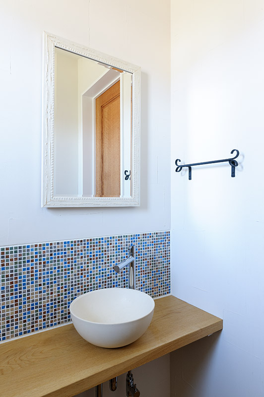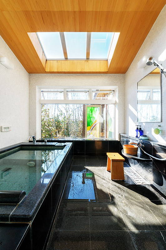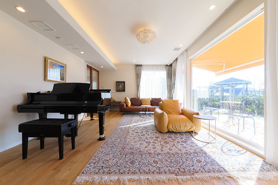 レンガをあしらった洋館風の外観が目をひくこの住まいは、お子さんたちが独立し、夫婦の2人の暮らしを楽しむ家として建設されました。玄関をはじめ、一つひとつの空間ををゆったりとレイアウト。ナラの無垢材や塗り壁など、内装には本物の素材を用いました。中でも力を入れたのが、庭の景色を楽しめる浴室。浴槽は青森の十和田石、天井はヒノキ材と贅沢に仕上げています。ご夫婦がセレクトした素材やインテリアを取り入れ、想いや希望を100%反映させた理想の住まいです。
